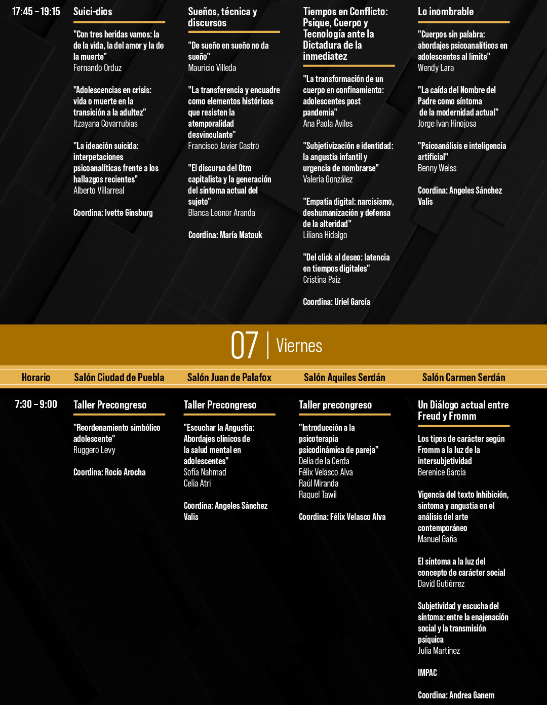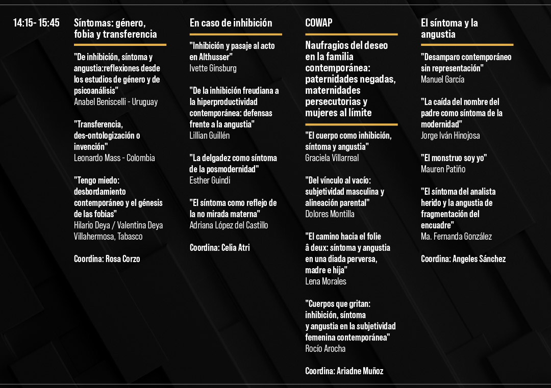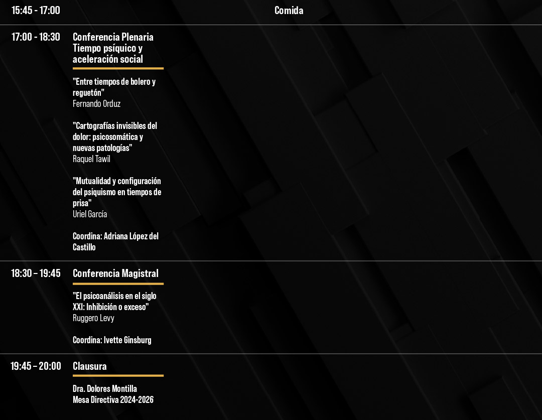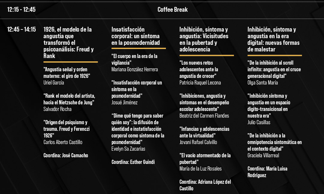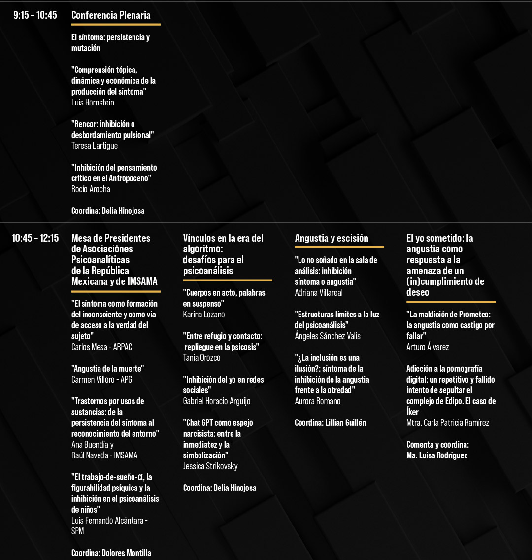 En un tiempo marcado por la aceleración, la hiperestimulación y la fragilidad de los vínculos, el Psicoanálisis se encuentra convocado a interrogar cómo se presentan hoy las inhibiciones, qué formas adquiere el síntoma y cómo se experimenta la angustia. Lejos de abandonarse a explicaciones sociológicas o adaptativas, este congreso se propone volver a las raíces metapsicológicas de estos conceptos para interrogarlos a la luz de la experiencia clínica actual.